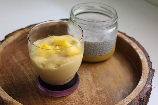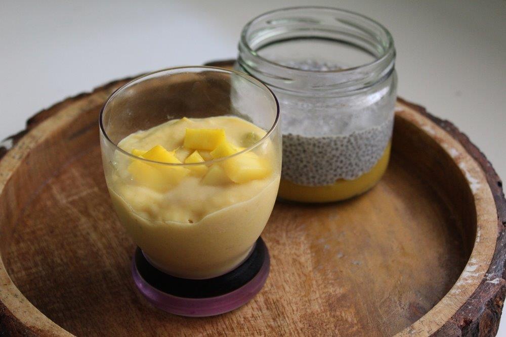 - Spoon it into a serving glass. Top with fresh mangoes.