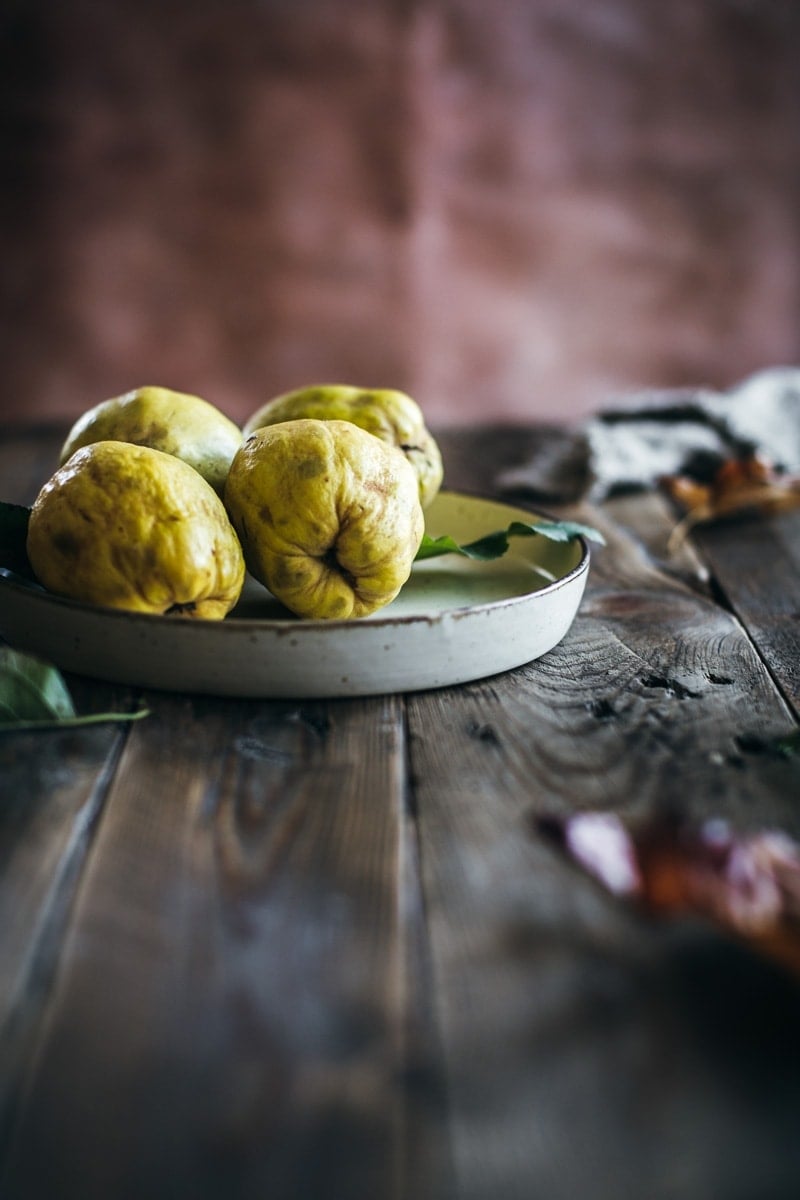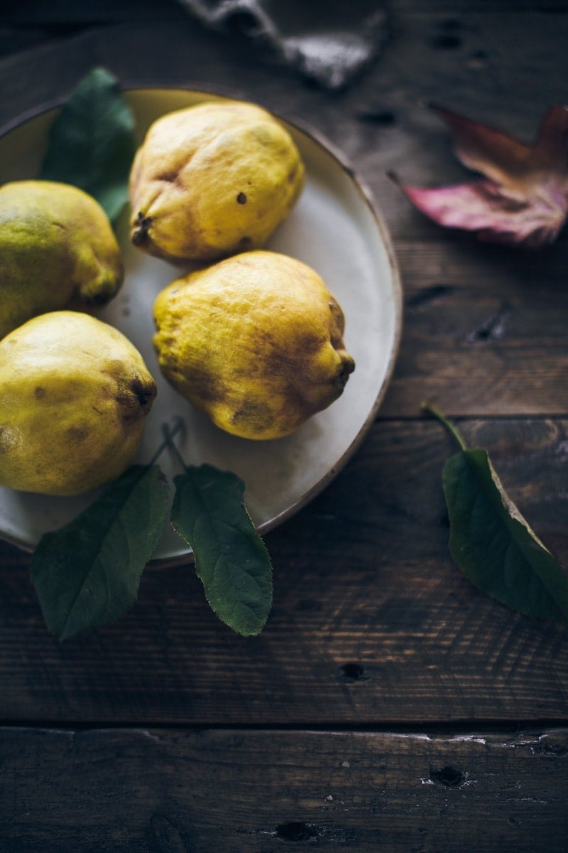 Before I moved to Australia 15 years ago, I had never come across a quince. Even in suburban Sydney, quinces are hard to come by. The only places you will find it during those autumn months is at farmer’s markets in the suburbs or in abundance in the countryside where I imagine they grow wild on acreage. And that is why every country general store or cafe has jars of rose coloured homemade quince jelly and slabs of quince paste. This gorgeous fruit with that perfumed fuzzy skin, tough as nails white flesh and tangy apple aroma is truly a magical thing. When you cook it, the pale white flesh becomes a vibrant coral pink deepening to a jewelled rose-tone as it cooks more. Absolutely breathtaking!