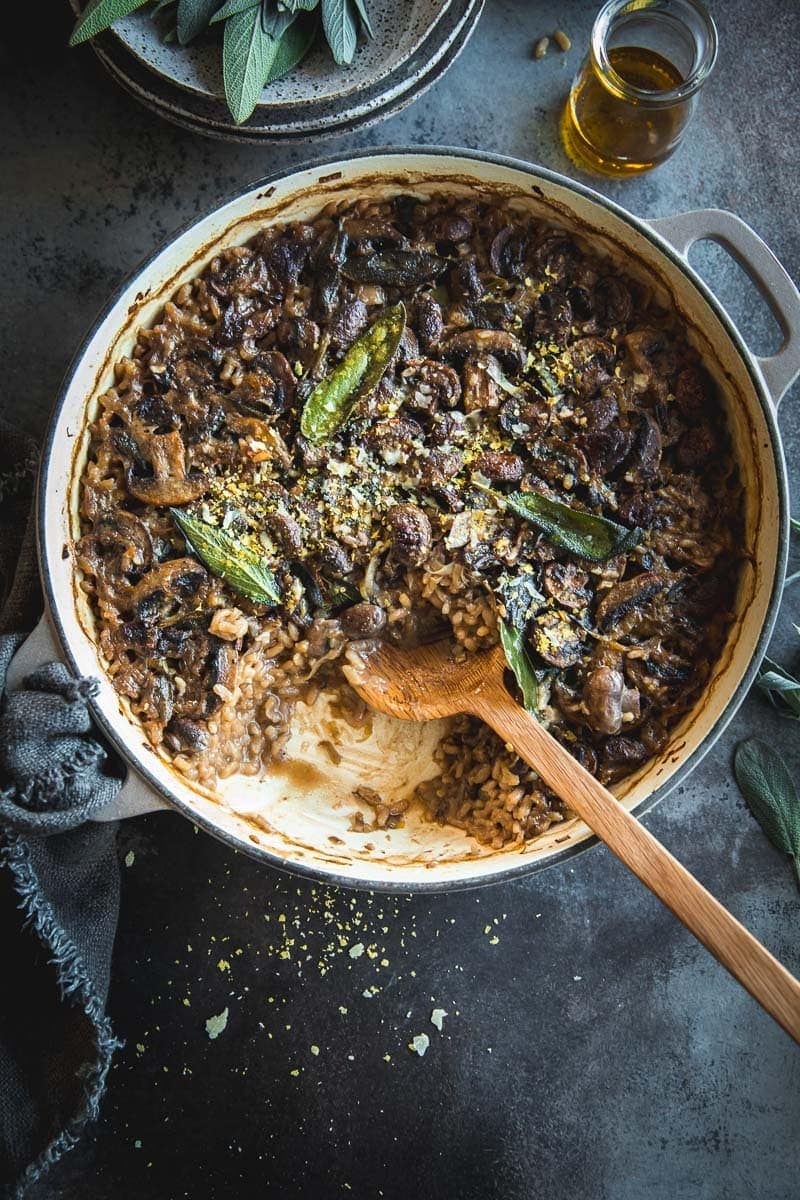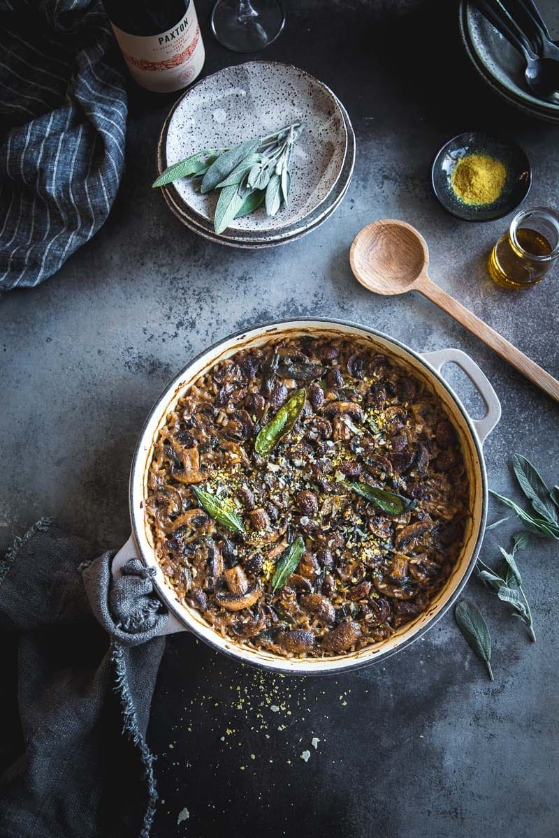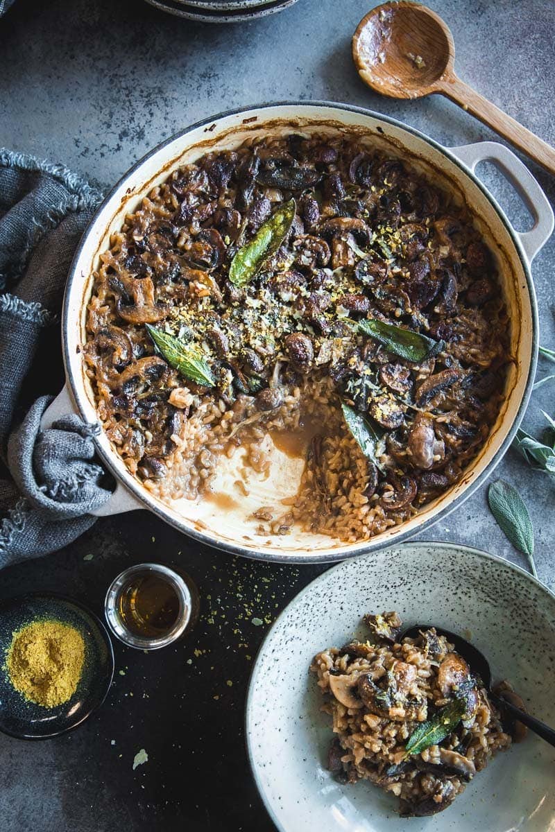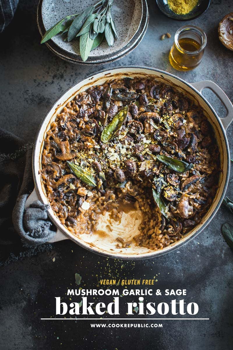 The post Vegan Baked Mushroom Garlic Sage Risotto appeared first on Cook Republic.
