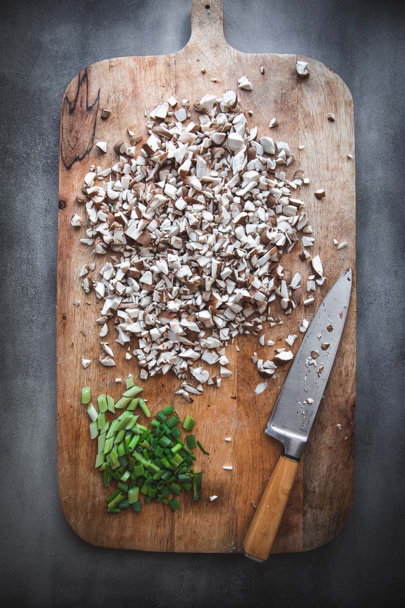 - 200g mushrooms (shiitake or swiss brown mushrooms), finely chopped