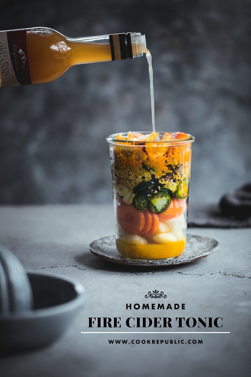 The post Homemade Fire Cider Tonic And Bubbly Fire Tonic Mocktail appeared first on Cook Republic.